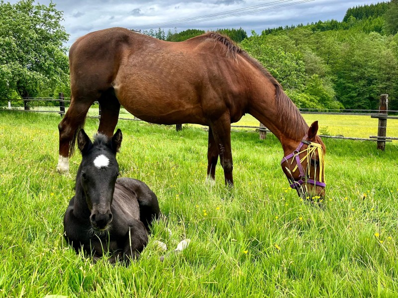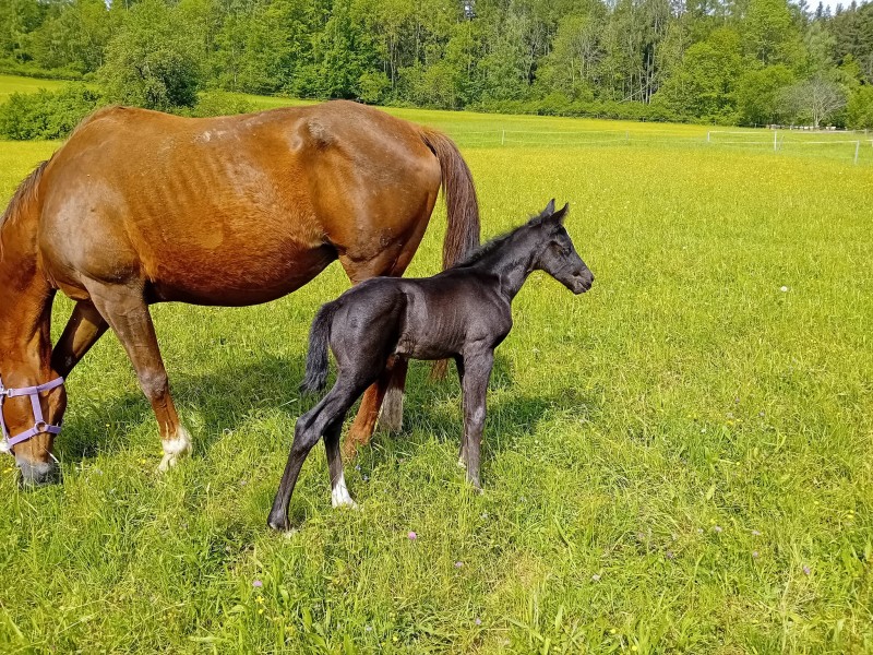 12.5.2024 Letos jsme očekávali jen jednoho potomka a 7.5. jsme ho mohli přivítat na světě. Hřebeček Wild Django s klisny Valley po hřebci Didiér.
